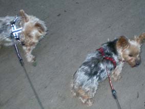 Frau Kurth mit ihren Hunden Teddy 12, Bonny 14 und Bubu 9 Jahre alt....