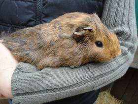 Shantala hatten wir als Baby mit 7 Wochen bereits vermittelt. Doch jetzt ist ihr Partner gestorben und die Haltung von Meerschweinchen wurde aufgegeben. Bei unseren Vermittlungen sagen wir immer, dass wir unsere Tiere wieder zurück nehmen, auch noch nach Jahren.,,Shantala ist eine kleine scheue Peruanerdame. Sie ist gesund und frisst auch alles, aber die Scheu vor dem Menschen hat sie noch. Für sie suchen wir einen ruhigen Kastrataten, an den sie sich anlehnen kann oder auch eine ruhige Gruppe, damit sie ein Meeri in der Gruppe findet, an der sie sich orientieren kann. Mit viel Geduld und Gurke kann Shantala aber bestimmt auch handzahm gemacht werden. |